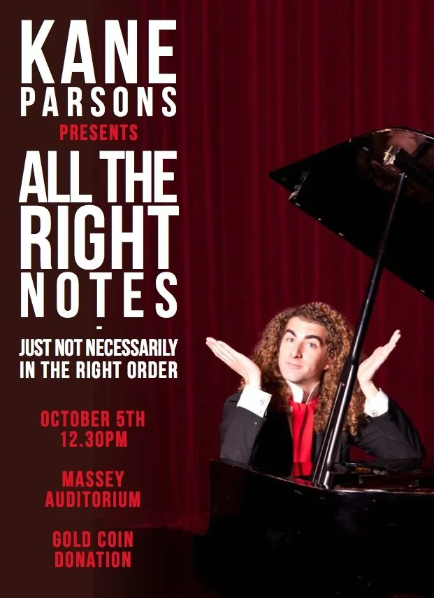 A charming little show, Kane Parsons ‘All The Right Notes’ is rightly described as a homage. And not just to musicians and music, but to comedy, as well as to friends and family. Richard Mays